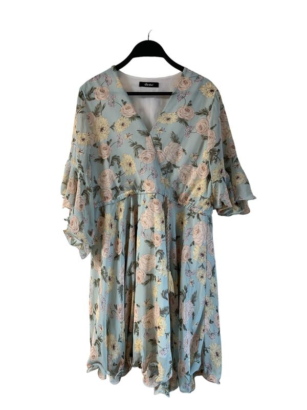 Укорочена сукня з квіткового шифону. Модель стилізована середніми об’ємним рукавом з акуратним воланом на резинці, пишною подвійною спідницею з рюшами та делікатним квітковим принтом. Розмір: S-M Для замовлення пишіть у дірект або телефонуйте.