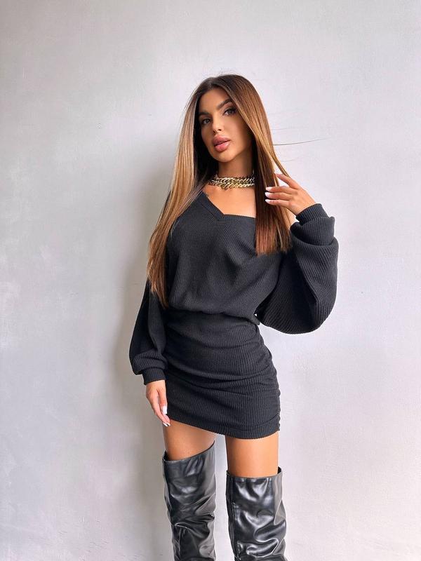 Трикотажна сукня міні ▫️тканина: утеплений трикотаж рубчик ▫️розмір: S та М (L + 200 грн)