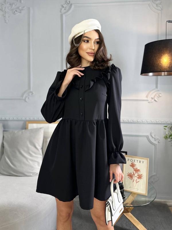 Сукня №694 Ціна- 650 грн тканина костюмка розмір 42-44,46-48 Гарне плаття , це приголомшливий варіант для святкового заходу. Красивий короткий фасон з довгим рукавом ідеально підійде на корпоратив до офісу, весілля або ресторану. Маленька чорна сукня, це незамінна в жіночому гардеробі модель.
