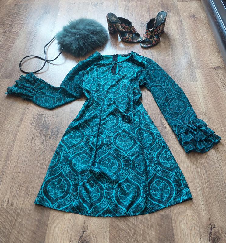 Сукня атласна з напівпрозорими рукавами. комбінування 2 видів тканини з однаковим принтом