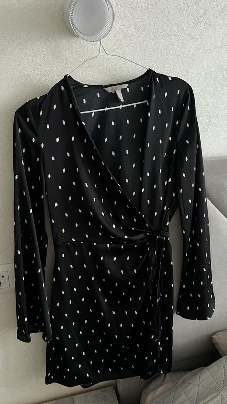 Сукня чорна в білу цятку на запах від бренду Н&М. Стан нової, одягнута один раз. Розмір S