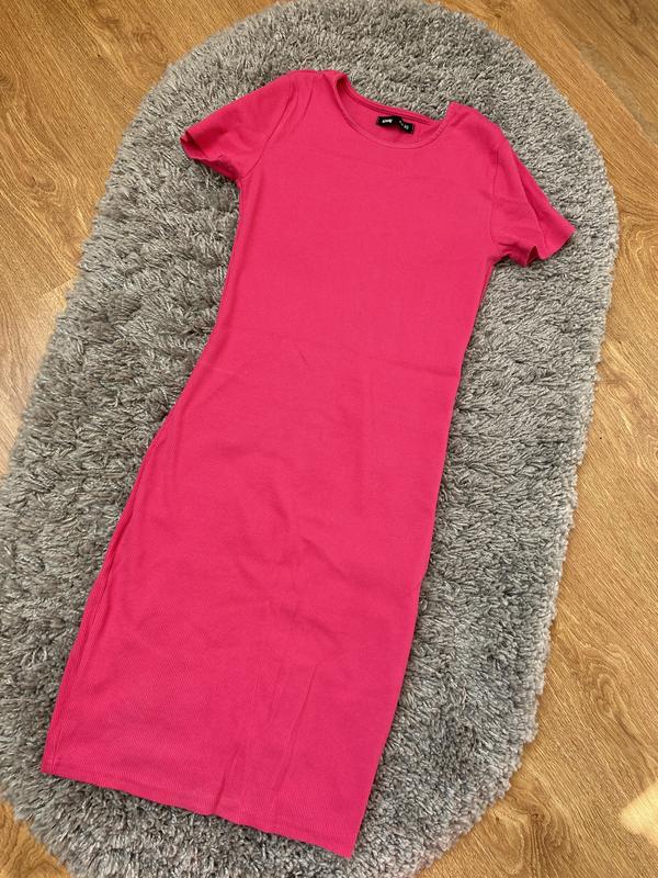 Новенька рожева сукня, одягалась один раз. Никаких повреждений, ткань качественная, яркая, окатики на ткани не появляются. Подойдет на размер 42-44, на рост 158-168.