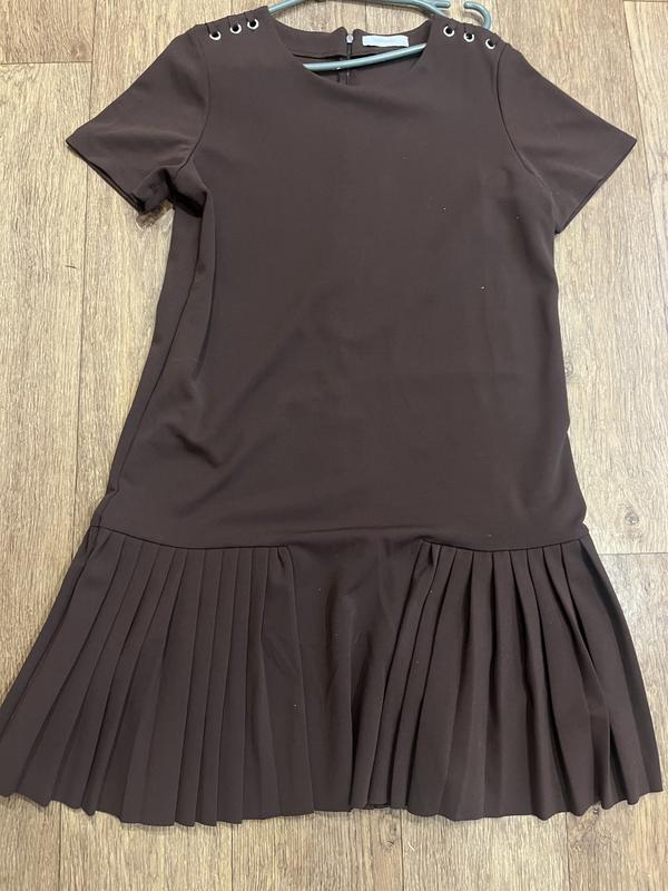 Мряма сукня Reserved, гарного шоколадного кольору. З декором на плечах. Зі зниженою спіднечкою, в складку. Можна носити на М