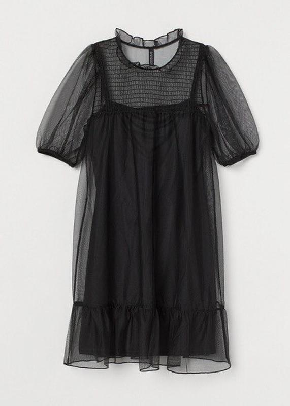 П: Черное платье двойника, длины мини, верхняя часть из сеточки, нарушенный рукав фонарик. Размер С - будет на хс-м Новая вещь с оригинальными бирками. ***********