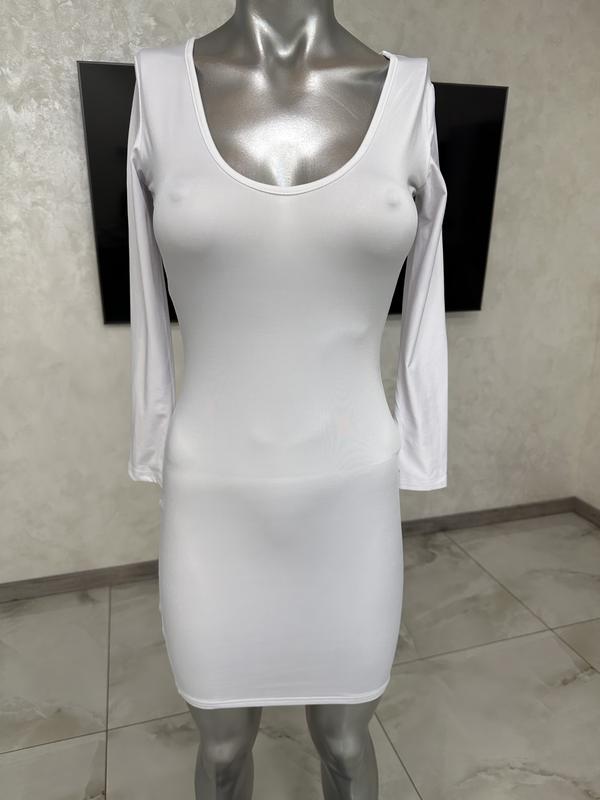 Біла сукня в чудовому стані. Розмір S. Заміри: довжина 86 см, пог 39 см, піт 30 см, поб 40 см, рукав від шва 50 см, плечі 34 см. Тканина добре тягнеться.
