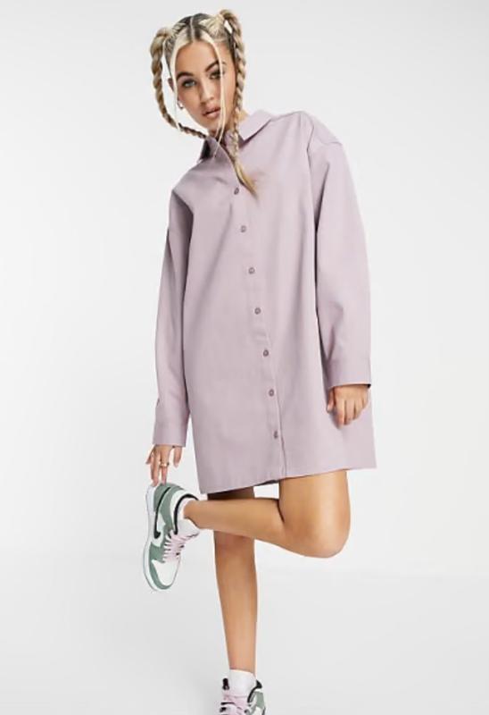 Стильна котонова міні сукня бузкового кольору. Пасує як верхня сорочка. Підійде на більший розмір за вказаний. Оверсайз. Стан нової речі. Сток. Паперові бірки відсутні.