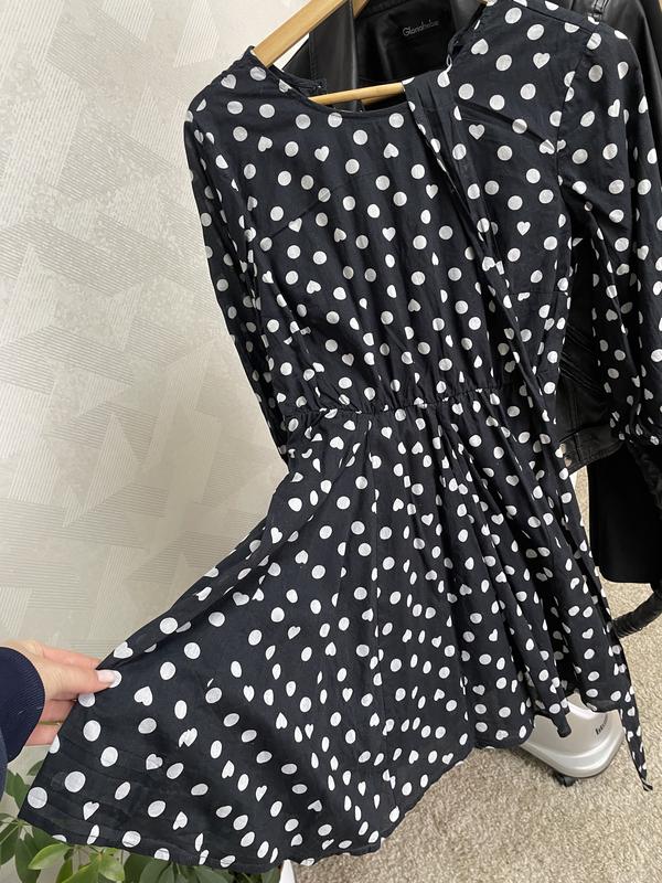 Платье черное в белый горох и сердочка. Приятная простая теанина. Юбка клеш