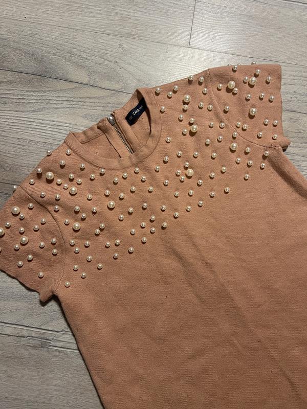 Вязаное теплое платье Zara. Цвет нежный персиковый . Размер подойдет на С-М