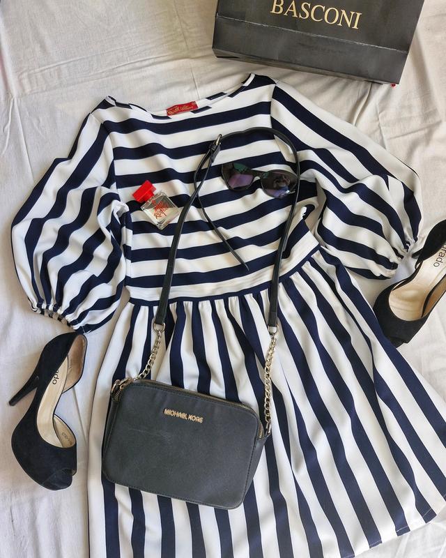 Сукня полоска ХЛ, груди максимум до 112, талія до 100, бедра вільні, довжина до коліна ( дивлячись який у вас зріст). В гарному стані, приємна до тіла.