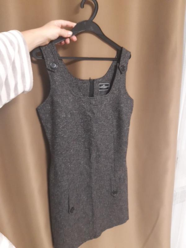 Платье-сарафан, отлично садится по фигуре, сзади на спине потайной замочек.