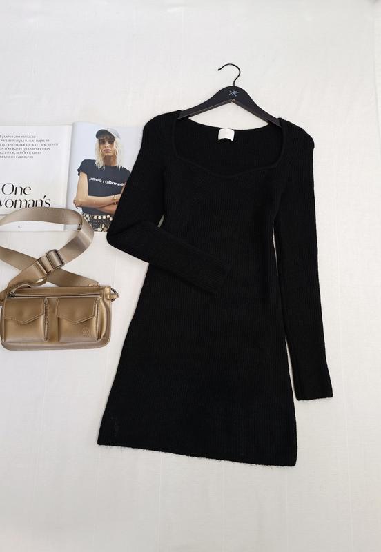 🌿черное платье H&M с красивым декольте, красиво тянется Размер L Замеры ПО груди 46 см, длина 92 см, рукав 68 см