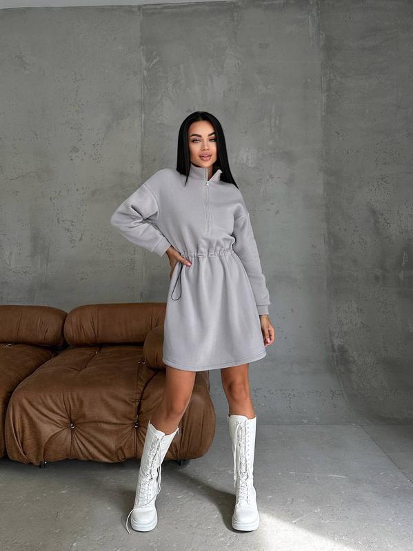 Сукня в стилі Oversize ▪️Сукня має на поясі шнурок-гумку, завдяки чому можна регулювати по комфортності . ▪️Тканина - трьох нитка на флісі ▪️Кольори - світло-бежевий, ніжно сірий, темний графіт ))89 Розміри - one size ▪️ОГ - до 108 см ▪️ОС - до 110 см ▪️Довжина - 87 см Ціна -605 грн