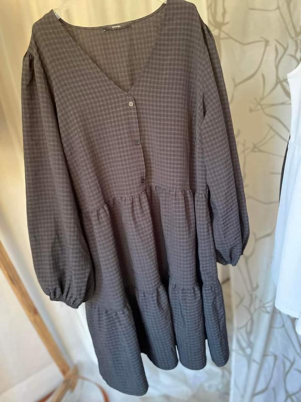 сукня вільного крою в стилі boho з воланами тканина фактурна в дрібну клітинку стильна ,гарно сідає,зручна р,50-52 новм ,беж бірки Вільний рукав не резинці Пог 65,плечі 44 Довжина 97 Пот61, поб вільно Р.20 можна на менше буде вільно або для вагітних супер