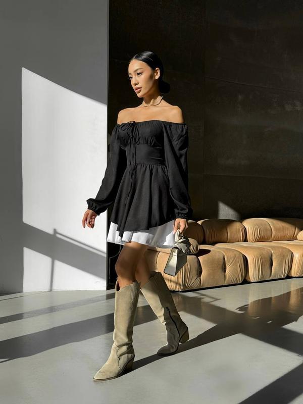 В наявності🔥 Сукня 🏷 Ціна: 820 грн⠀ Розміри: 42-44, 46-48 Кольори: чорний Тканина: костюмна тканина та софт ⠀ Арт. 714