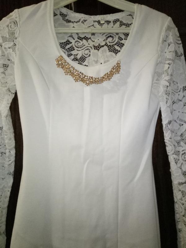Очень красивое платье, красивые гипюровые рукава и сзади на спине вставка гипюровая. Красиво смотрится на фигуре
