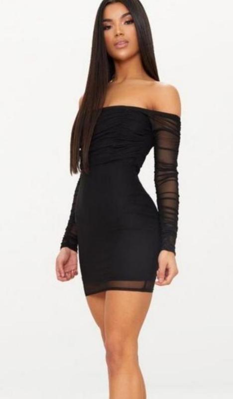 Вечернее платье от PrettyLittleThing, поверх идет сетка, очень красивые рукава защипами, состояние новое с биркой, без дефектов. Размер указан 34. Длина по центру спинки 67 см, пог 31 см, пот 29 см, поб 35 см, рукав 53 см, платье тянется.