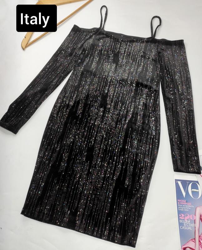красива жіноча сукня міні футляр чорного кольору з блискітками, з довгими рукавами на бретелях з відкритими плечима, в ідеальному стані 😉