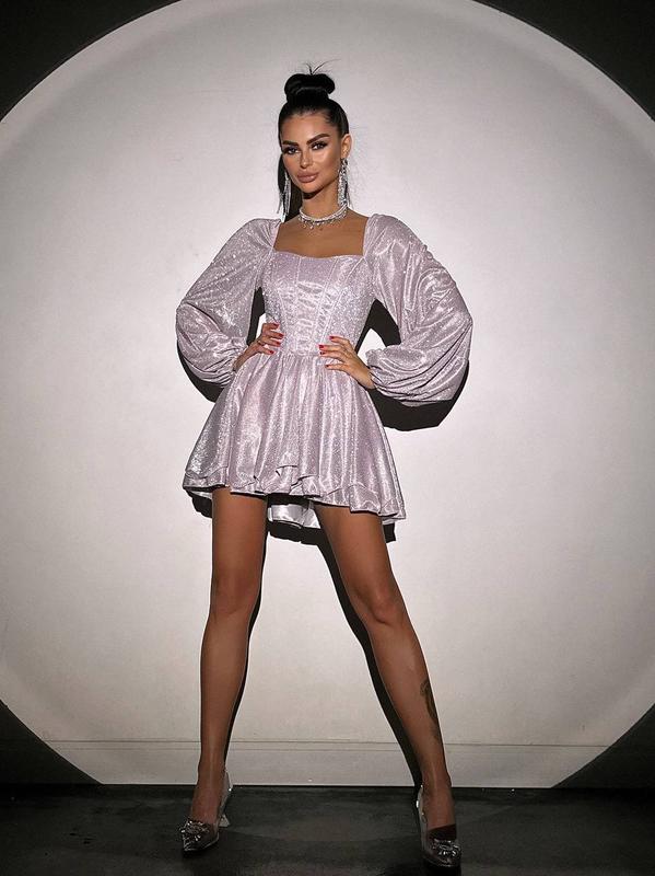 ‼️ТЕРМІНИ НА ВІДПРАВКУ ДО 3-7 РОБОЧИХ ДНІВ ‼️‼️ТЕРМІНОВИХ ВІДПРАВОК НЕМАЄ ‼️ФОТО РЕАЛ Сяюча корсетна сукня з пишною подвійною спідницею та об‘ємними рукавами. ▫️тканина: люрекс ▫️розмір: S ( 42 ), М ( 44 ) ( L + 200 грн)