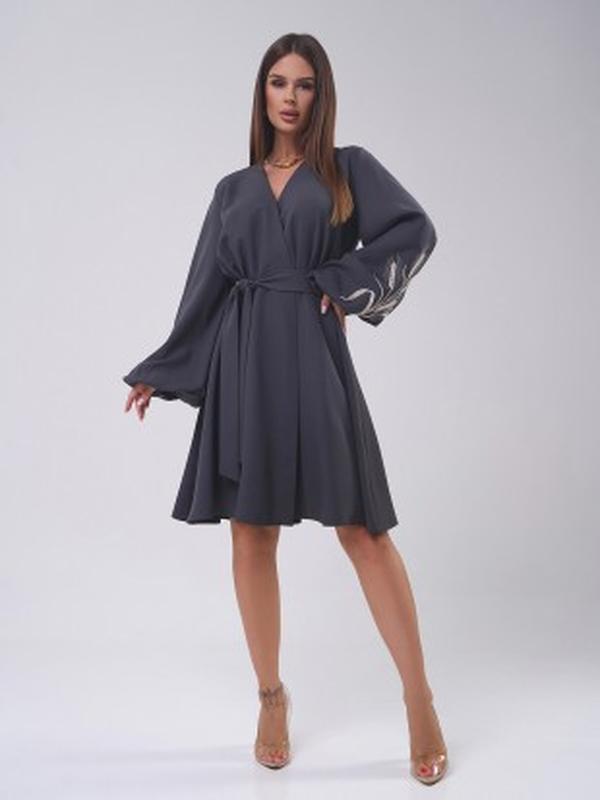 Арт: SA-546Колир:мята,беж, черный,темно-серый.Вымеры Мы измеряем готовые изделия! Чтобы точно определить размер, сделайте замеры одежды сантиметровой лентой и сравните с таблицей. Полуобхват S/M L/XL Груди 45 47 Талия 30 32 Стегна 64 66 Длина изделия: 93 Рукав: 62 Ткань: низкая эластичность Матриал: Костюмка Состав: 100%, полиэстер Сукушка кроя на запах, выполненная из мятной костюмки с V-образной горловиной. Модель с длинными объемными рукавами на резинках, декорированными вышивкой. Изделие с сборками на талии и расклешенным низом длиной до колен. Платье имеет пояс.