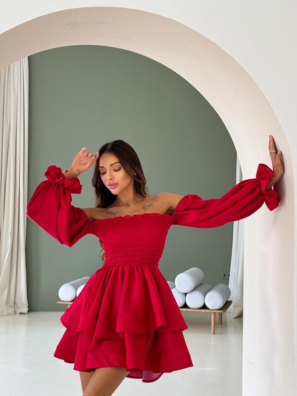 Атласное платье с пышной юбкой и объемными рукавами, атласное платье, 1013