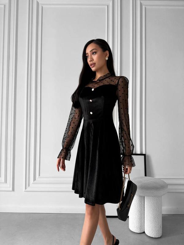 Сукня з бархату арт. 28.11сл Розміри: S, M, L, XL Тканина: бархат Корея (дуже якісний та приємний на дотик) Колір: чорний Сукня дуже гарна та вишукана. Прикрашає модель декоративні ґудзики. Супер якість.