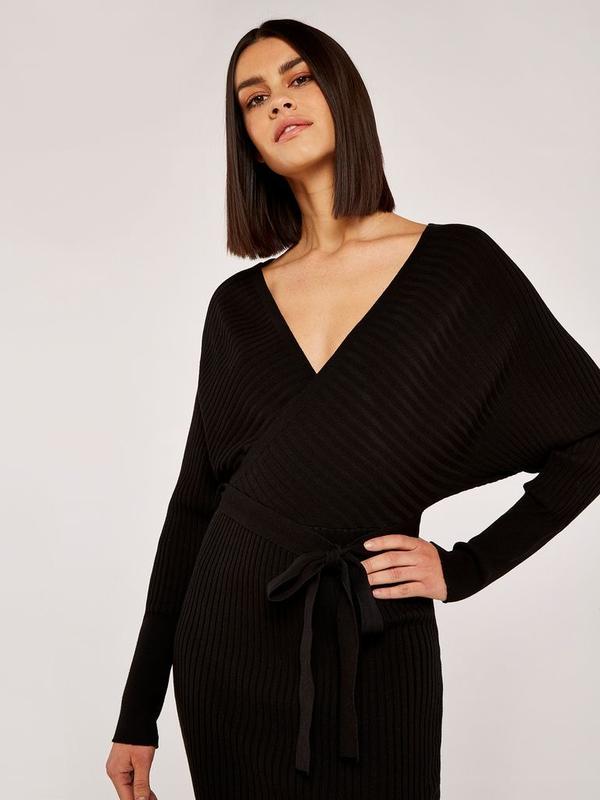 Apricot трикотажна сукня в рубчик із зав’язкою та талією розмір s
