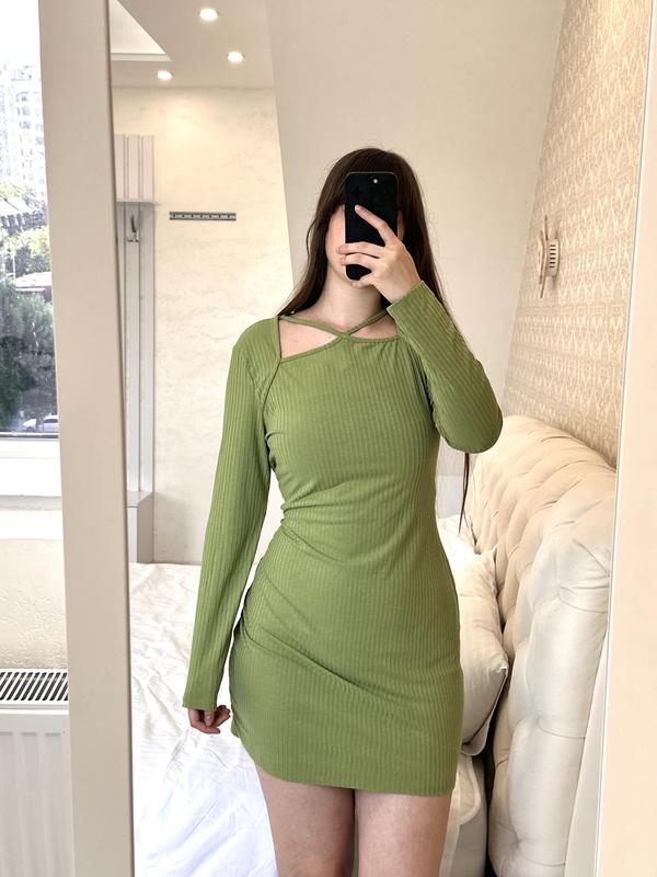 Салатова насичена сукня в рубчик міні халтер halter neck жіноче плаття женское платье