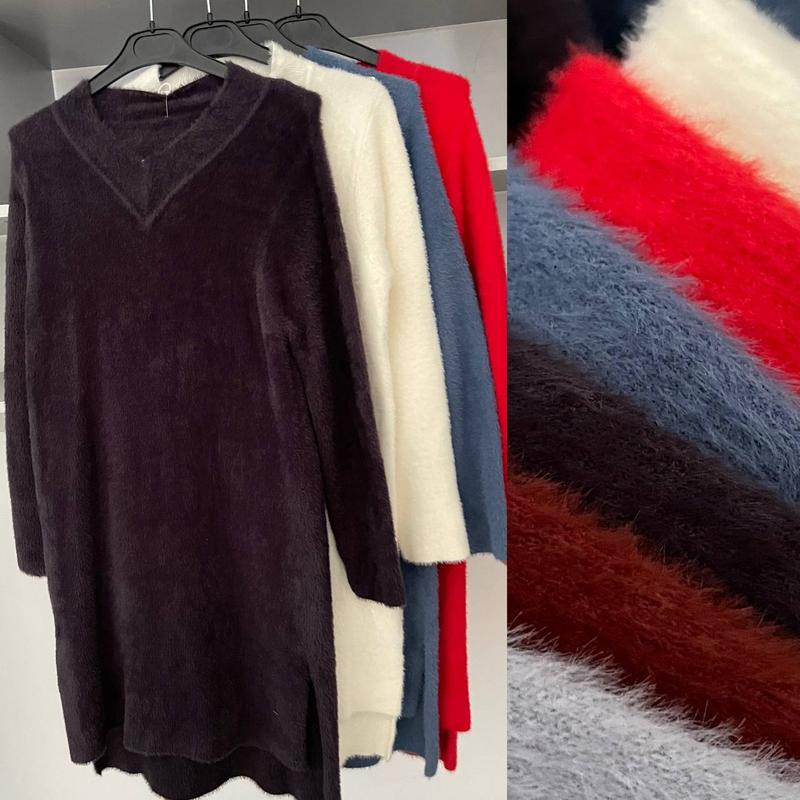 Очень классные платья из альпаки 💣💣💣 Стильные😍, теплые, ❄️качественные👌 По спинке длиннее, сбоку разрез. Красивые цвета 💙🤍🖤❤️🩶🤎💜 Размер: универсальный Пог 48, длина по спинке 97см, спереди 90см. Тянется.