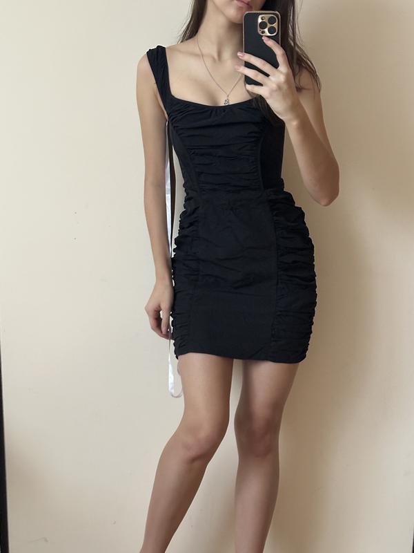 Трендова нейлонова чорна сукня, в корсетному стилі. Лямки можна опустити при бажанні. Ззаду на застібці. Розмір по бірці 34. Буде на XS-S Заміри: ОГ:34/37 ОТ:32/34 ОБ:38/44