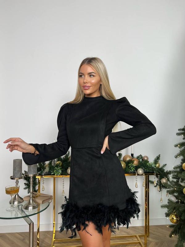 Замшева сукня з пір'ям, плаття замш на дайвінгу та лебедине пір'я, платье с перьями