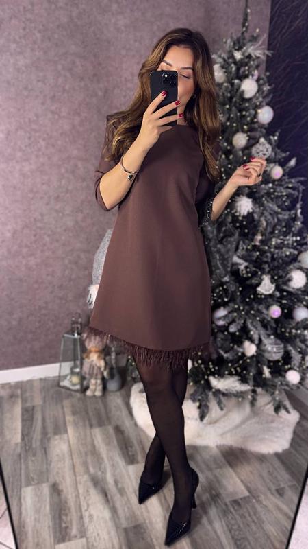 Арт ha.495 Тканина костюмний креп Колір шоколад, чорний Плаття трапеція, вільного крою, позаду застібається на ґудзик, рукав 3/4 шоколадний 54-56,58-60 чорний 54-56(2),58-60(1)