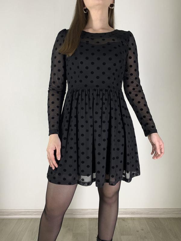 Неймовірна сукня у горох, розмір М У складі 95% поліестер, 5% еластан Довжина 81 см, довжина рукава 59 см, напівобхват грудей 41 см Стан ідеал