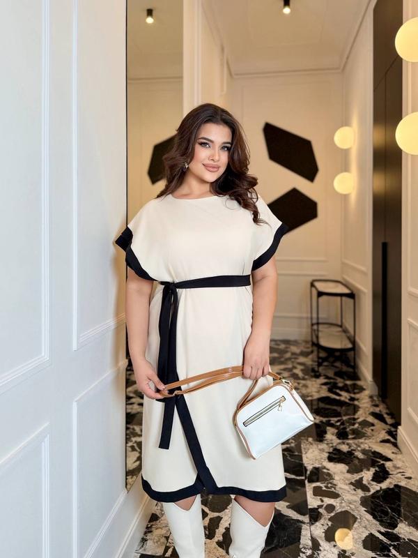 Плаття мод 980 Розмір: 42-46 48-52 54-58 Тканина: турецька костюмка Колір: беж, чорний Фото реал 📸