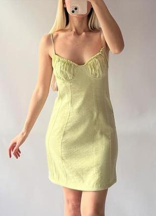 Стильна легка міні- сукня на бретельках. Розмір підійде L-XL Заміри уточнюйте. Матеріал віскоза Оливковий колір Нова , без цінника.