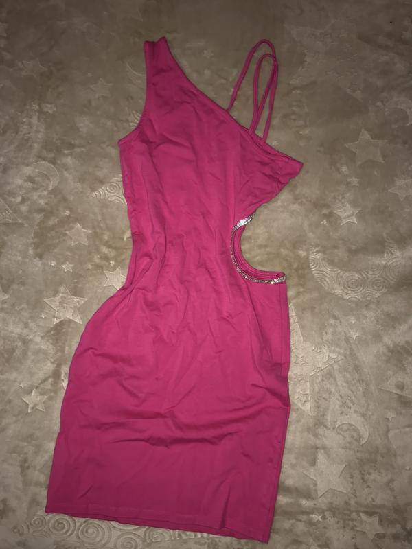Розмір XS, можна і на S. Тканина тягнеться, приємна на дотик. Довжина 83 см від плеча. Не одягала жодного разу. Всі стразики на місці, світлини всі справжні.