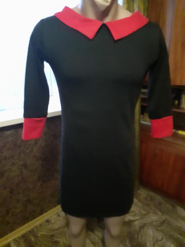 плаття футляр чорне з красным манжетами та коміром,рукав три чверті