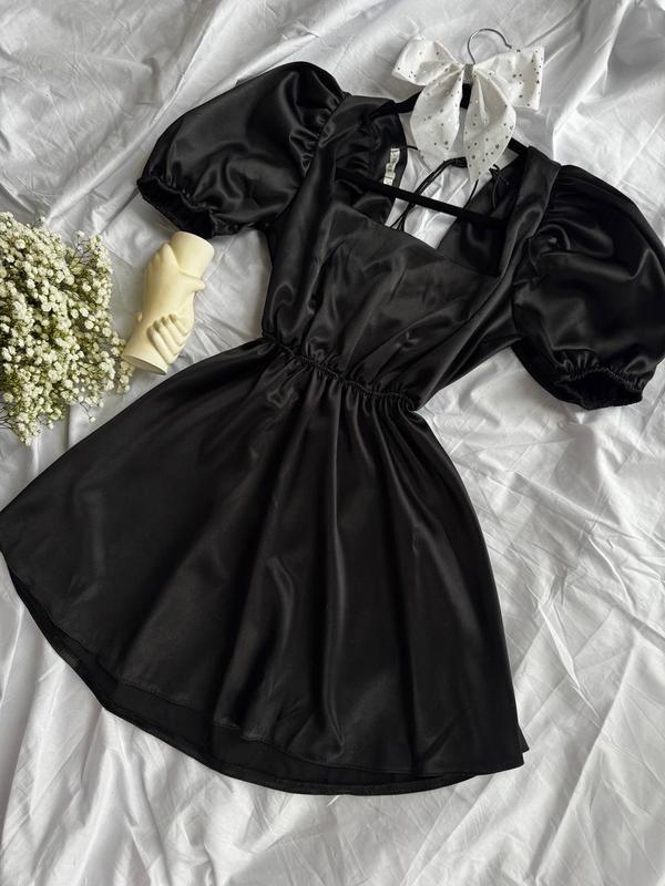 😌🤩😉☺️😌😉😚 🔥 Сукня 🖤 ___ Код fs 371 🔹Тканина: щільний атлас 🔹Колір: чорний 🔹Розмір: 42/44, 44/46 💸Ціна: 990 грн. Якість 🔥 Сукня з акцентом на спинку яка заворожує з першого погляду✨ Реал фото ✅