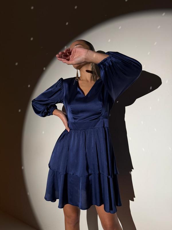 💎💎В НАЯВНОСТІ 💎💎 НОВИНКА 💎💎 🎀🎀Сукня 🎀🎀 Арт. SV 584 Тканина: королівський шовк Колір: синій,мокко, пудра Розміри: S, M, L, XL Опис : Шовкова сукня бебі дол міні довжини з ярусними воланами. Модель з V-подібним вирізом горловини та рукавами 3/4. Застібка -прихована блискавка на спині. (Заміри вказані на параметри)