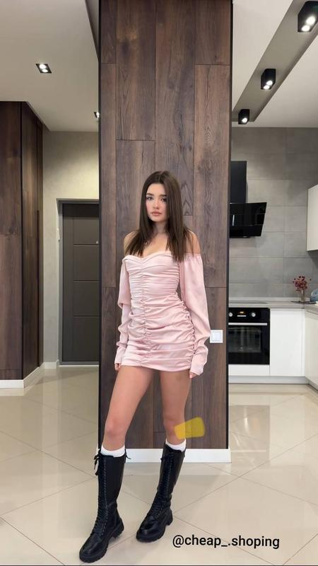 Сукня з атласної тканини в чорному та пудровому кольорі коротка