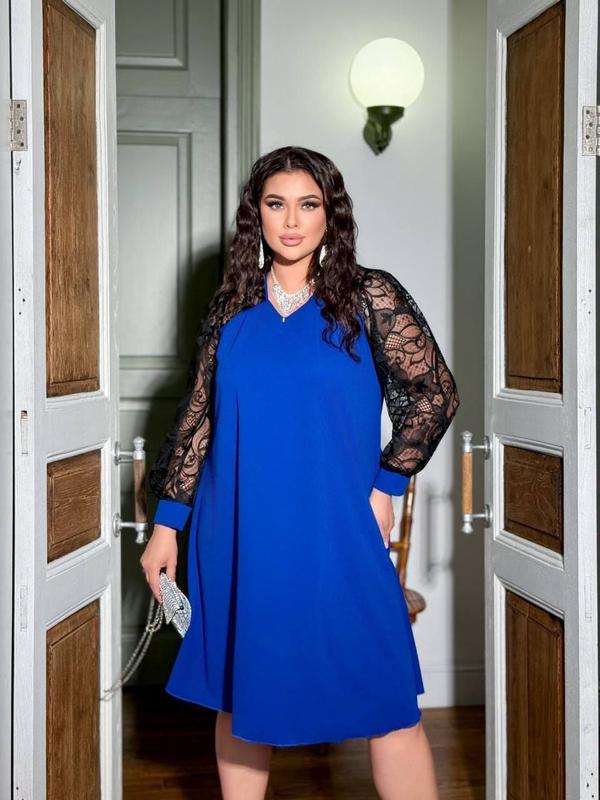 ⬆️Платье. Вечернее платье, свободного кроя. Мод. 0323❤️17 Ткань: креп дайвинг+ кружево Цвет: индиго, мята, черный, красный. Размер: 48-50; 52-54; 56-58. Ог: 110/118/126 см. От: 112/120/128см. Ос : свободные Длина рукава: 56+5 см манжет. Длина платья: 108см. Растяжимость ткани: 2-3см. На модели 52/54 размер