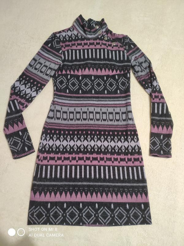 одяг б/в. Тепла сукня з відкритою спинкою, розмір 36 s. Довжина 82 см.