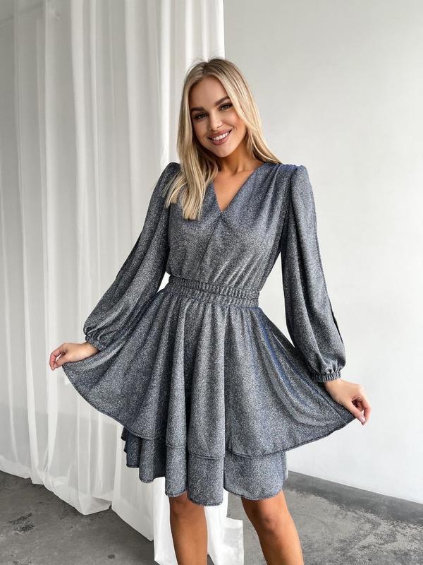 Блискуча люрексова сукня Мод 152 Размер - 42-46 Тканина - люрекс Цвет - серебро хамелеон - переливается в цвет elлектрик Платье с блестками, в котором ты будешь сиять как звезда в новогоднюю ночь Очень роскошное и романтичное платье Идет двойная юбка Цена 920 грн✨