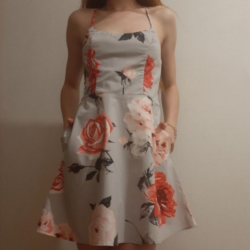 Сукня в ідеальному стані. Підкреслює витончену талію. Має ніжне мереживо на спинці, яке підкреслює жіночність і ніжність. Застібається за допомогою блискавки ззаду. Є 2 кишені в нижній частині. Розмір S Довжина нижньої частини (юбки) 44 Довжина всієї сукні 81 Довжина верха 25 Ширина в талії 34