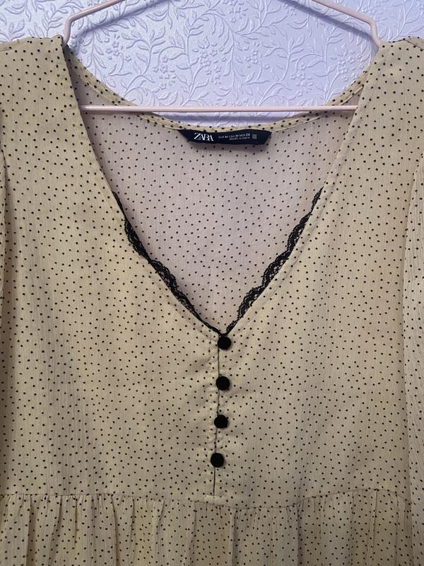 Неймовірне легеньке плаття Бежеве у чорний горошок з гарними оксамитовими ґудзиками Напівобхват: Груди 48 Талія:43 Бедра вільно На підкладці