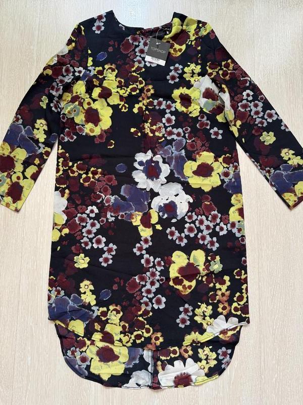 У наявності гарне плаття фірми TOPSHOP. Розмір вказаний 6. за вимірами добре буде і на 8. Склад: 100% поліестер... тканина м'яка та приємна до тіла, трохи тягнеться. НОГ-46+німного тягнеться, довжина плаття-85, по спинці трохи довжиною-95, плечі-37, довжина рукава-52, напівоб'єм талії — 47, напівоб'єм у стегнах — 48.