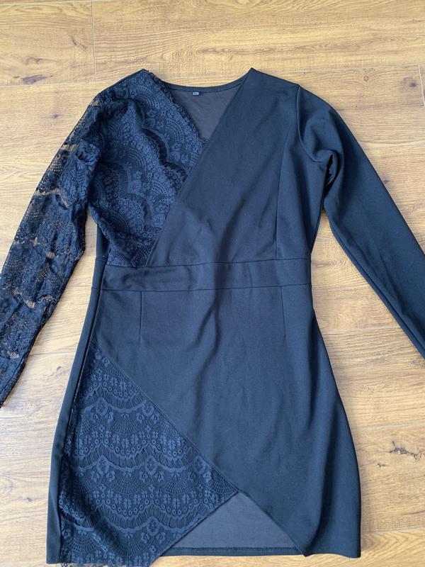 Вечірня сукня з мереживним рукавом та мереживними вставками