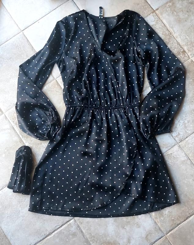 Сукня на запах. Рукава та в талії на резинці. Додатково є ще пояс.