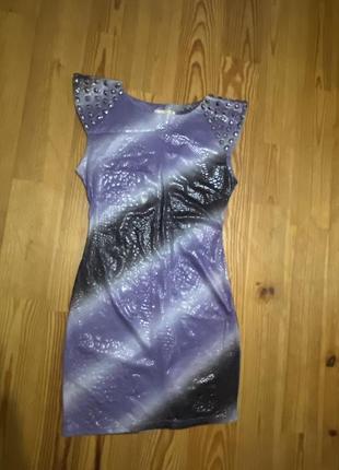 Гарна сукня, тканина тягнеться, має гарні інкрустовані камінчиками плечі. Розмір s-xs, довжина 75см, напів оберт грудей під рукавом 39 см. Стегон 40см.