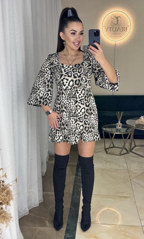 Модель - (053) Тканина :костюмка шовковіста- леопард. Розмір:42-44,44-46,46-48.,48-50,50-52. Колір - леопард-сірий.. Ідеальна та зручна літня сукня. Заміри: (42-44) Обʼєм грудей 86, довжина рукова від плича 58,об.талії резінка 30см., довжина виробу 84см. (44-46) Обʼєм грудей 88, довжина рукова від плича 59,об.талії резінка 32см., довжина виробу 85см. (46-48) Обʼєм грудей 90, довжина рукова від плича 60,об.талії резінка 34см., довжина виробу 86см. (48-50) Обʼєм грудей 92, довжина рукова від плича 60,об.талії резінка 36см.,довжина виробу 87см. (50-52) Обʼєм грудей 96, довжина рукова від плича 61,об.талії резінка 38см.,довжина виробу 88см.