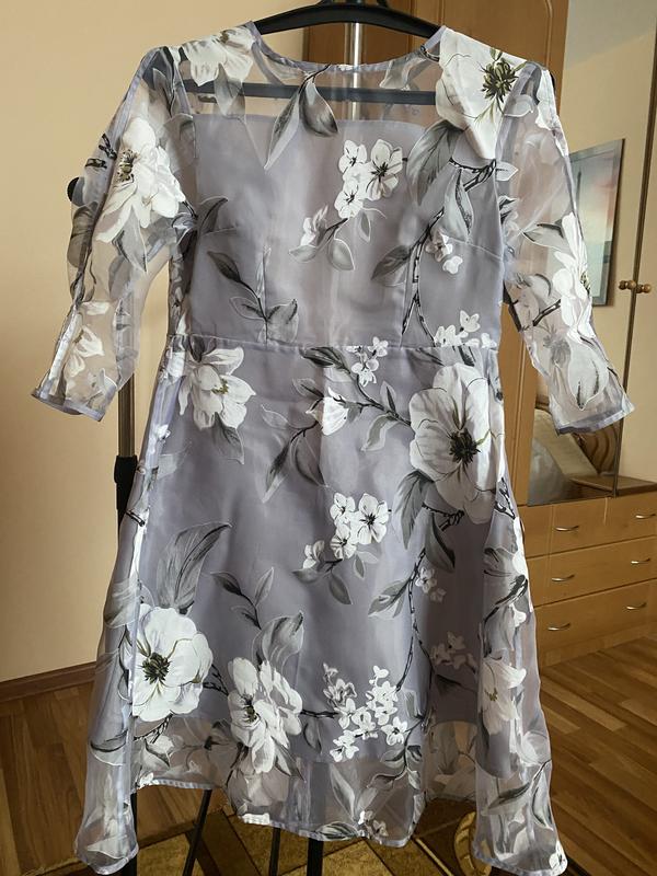 Элегантное платье в цветочный принт. Размер м. Длина 98, ПОГ 45, ПОТ 39. Платье пошито трапецией, рукав имеет красивые разрезы. Очень красиво и стильно смотрится